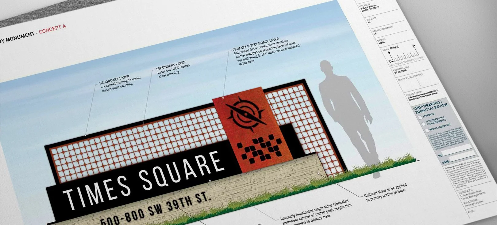 Research & Development | Concept Development | Signage Planning | Fabrication & Installation Coordination | Shop Drawing Development | Location-Specific Sign Planning |